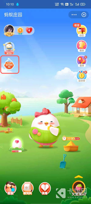 3、进入蚂蚁庄园后,在左上角即可查看到当前小鸡的心情指数,每天默认为70分;